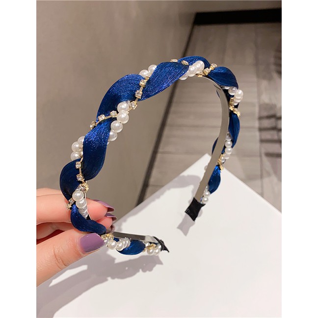 Detail LRC Bando Fashion Rhinestone Pearl Twist Braid Braided Headband K99585
