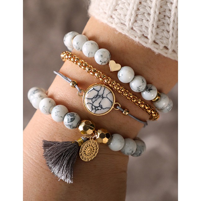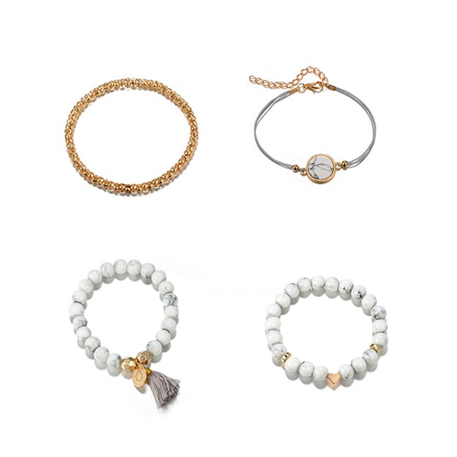 LRC Gelang Tangan Fashion White Tassel Decorated Bracelets(4pcs)LRC Gelang Tangan Fashion White Tassel Decorated Bracelets(4pcs)LRC Gelang Tangan Fashion White Tassel Decorated Bracelets(4pcs)