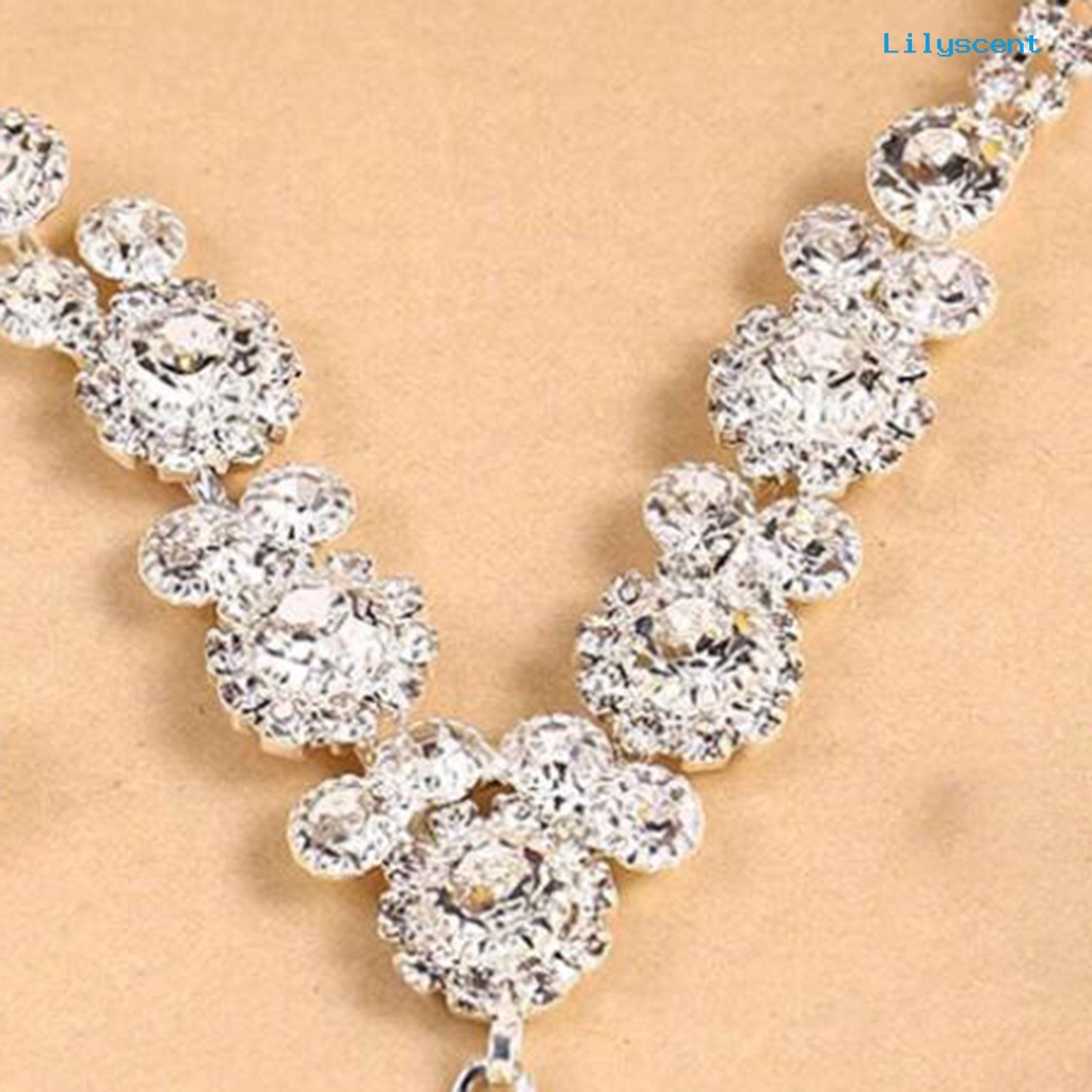 Detail [LS]1 Set Liontin Leher Pengerjaan Halus Aplikasi Lebar Paduan Berkilau Indah Drop Anting Kalung Perlengkapan Perhiasan