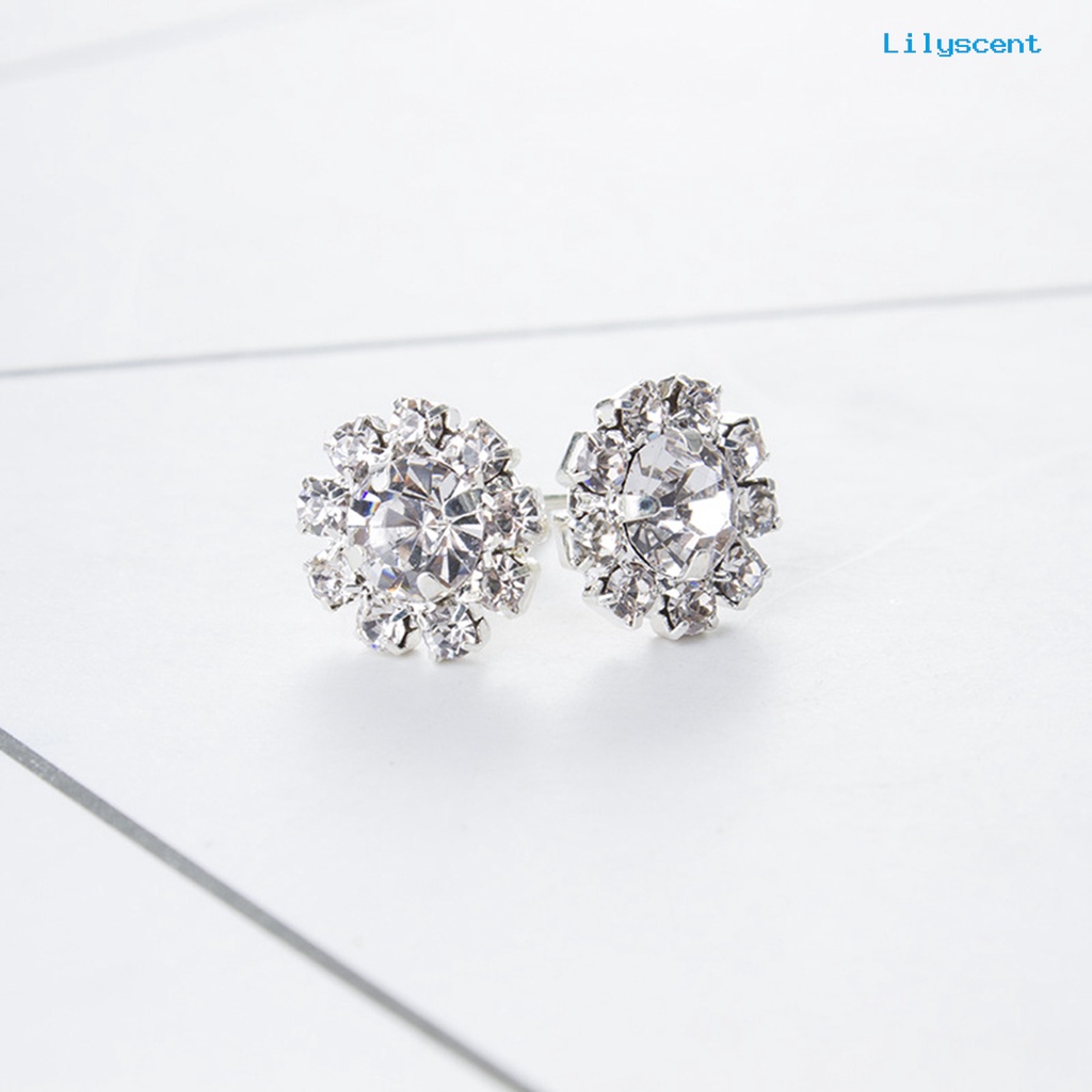Detail [LS] 1pasang Ear Stud Berlian Imitasi Menawan Paduan Berbentuk Bunga Anting Elegan Untuk Wanita