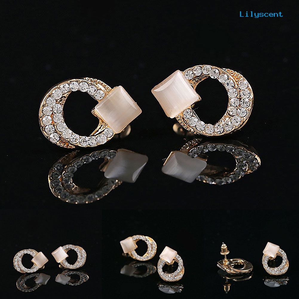 Detail [LS] 1pasang Fashion Wanita Lady Elegan Kristal Berlian Imitasi Ear Stud Nada Emas Anting