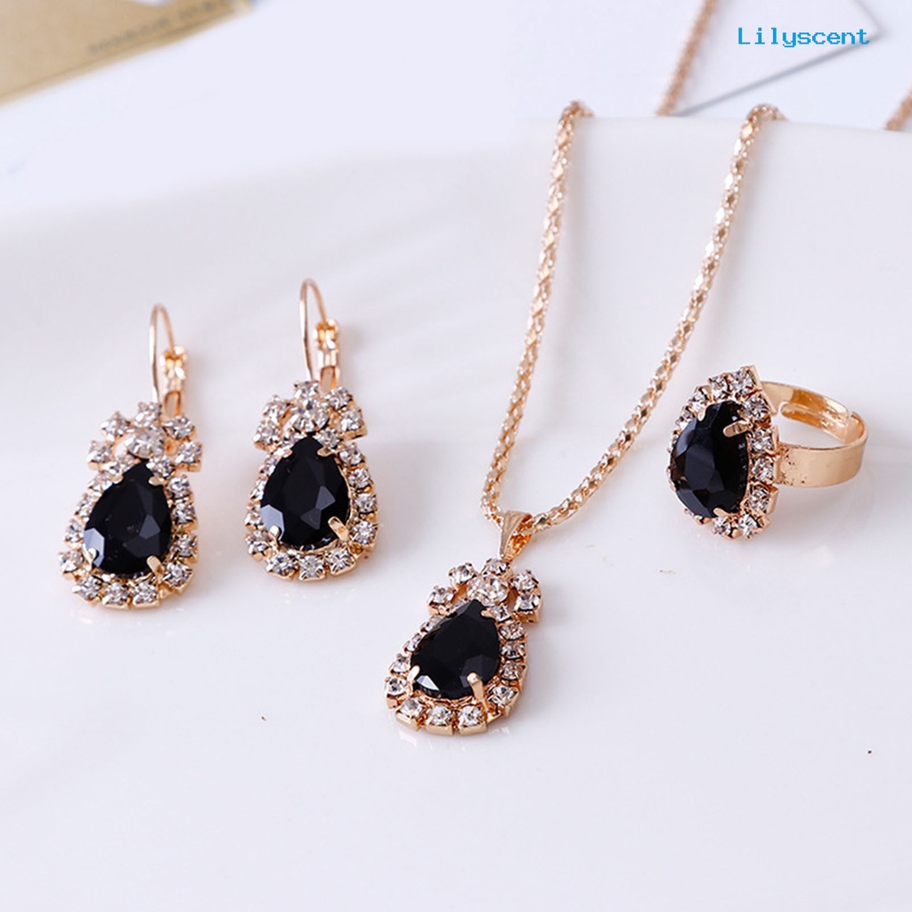 Aksesoris Fashion > Set & Paket Aksesoris > [LS] 3pcs/set Ladies Pendant Necklace Bentuk Tetesan Air Aksesori Tahan Aus Elegan Kalung Menjuntai Anting Cincin Set Untuk Pernikahan