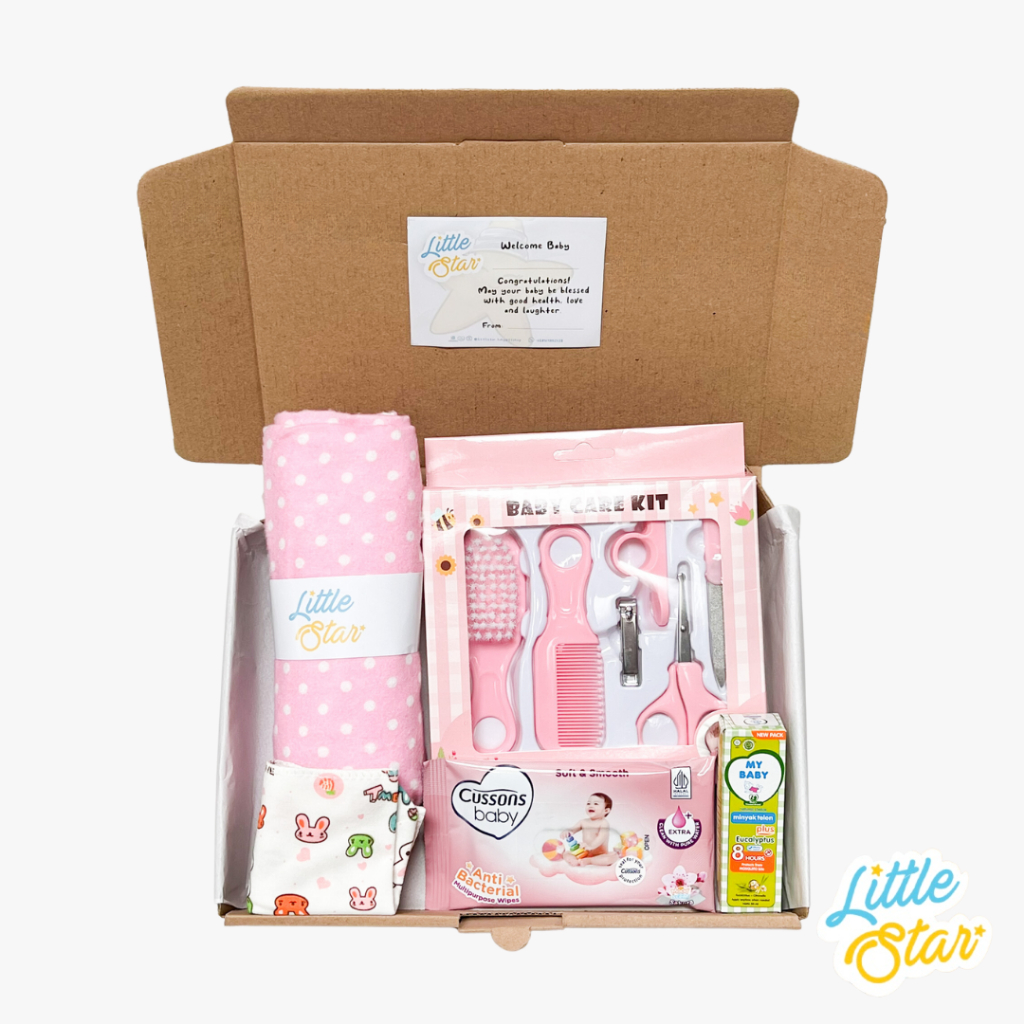 LS 5in1 Hampers Newborn Baby Care Gift Set Alat Perawatan Bayi Lahiran Handuk Bedong Bayi Baru Lahir Unisex Boy Girl