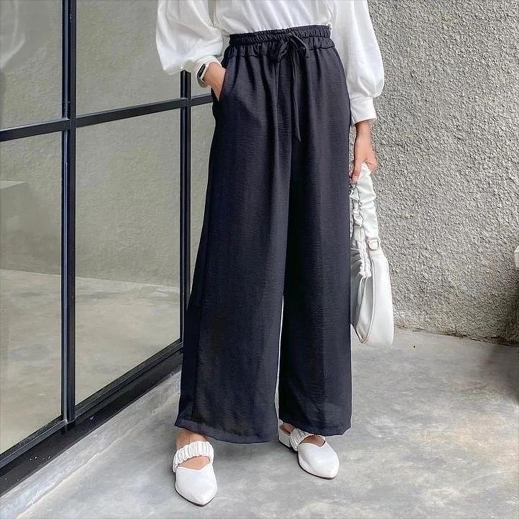 Fashion Muslim > Bawahan Muslim Wanita > Celana Palazzo > LS 839 - Kulot Crinkle Airflow Tali Tengah Cringkle Crepe Premium Dobby Pants low Celana Panjang Kulot Wanita Viral