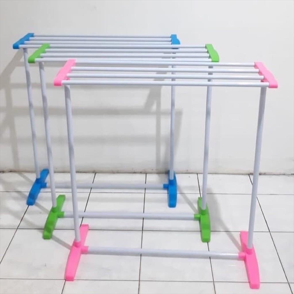 Hai, baca dulu yuk sebelum cek out keranjang belanja kalian. DESKRIPSI PRODUK : Jemuran Handuk terdiri dari 5 palang Warna : Tersedia Pink , Biru , Hijau namun akan kami kirimkan random sesuai persediaan stok yang ready ukuran : - panjang:75 cm - lebar :35 cm - tinggi :90 cm bahan pipa : besi coating bahan sambungan : plastik Rak Jemuran Portable ini cocok digunakan untuk menggantung handuk atau pakaian yang sudah di pakai. Rak ini dapat digunakan di indoor maupun outdoor. Dapat menahan beban sebesar 5kg. Kapasitasnya bisa untuk 6 buah pakaian atau handuk. Sangat mudah dirakit tanpa perlu perkakas. Praktis, dan menghemat tempat dirumah anda. DEAR CUSTOMER TERCINTA MOHON TAMBAHKAN BUBBLE WRAP UNTUK PENGEMASAN YANG LEBIH AMAN NOTE : 1. Kepada semua customer tercinta. wajib melakukan video unboxing saat membuka paket ya, agar tidak terjadi praduga diantara kita. hehehe... 2. Jika ada kendala pada paket kalian, stop untuk langsung memberikan penilaian buruk namun lakukan hal penting berikut : * Chat kami tentang keluhan paket yg diterima dengan melampirkan resi paket dan video unboxing dari awal pembukaan paket (BUKAN REPACKING YA) * Tunggu respon terbaik dari kami ya say, eits tapi syarat utama harus dipenuhi ya (foto resi dan video unboxing dilampirkan) 3. Pengiriman hanya dilakukan di hari Senin - Sabtu. Mohon maaf sekali Minggu dan tanggal merah kami OFF Pengiriman dikarenakan kurir juga libur 4. Pesanan yg masuk diatas jam 16.00 akan diproses keesokan harinya di hari kerja 5. Produk yg bisa diklik = READY 6. Produk yg tidak bisa diklik = KOSONG 7. RANDOM = TIDAK BISA PILIH VARIAN / WARNA / MOTIF ATAU APAPUN YA. Intinya dikirimkan produk tersebut sesuai persediaan stok yg ready 8. Kami hanya mengirimkan pesanan sesuai varian yg tersedia dan telah diklik pemesanan oleh anda. MOHON MAAF SEKALI TIDAK MENERIMA SISIPAN WARNA/ MOTIF DI CATATAN CONTOH : ORDER 1 PUTIH, 1 HITAM DAN 1 MERAH MAKA YG HARUS DILAKUKAN : KLIK VARIAN WARNA PUTIH DAN MASUKAN JUMLAHNYA SEBANYAK 1X, LANJUT KLIK VARIAN WARNA MERAH DAN MASUKAN JUMLAHNYA 1X DAN SETERUSNYA 9. Mohon dengan cinta untuk memberikan penilaian yg terbaik anda, pastinya bintang 5 selalu kami tunggu. kecup sayang dari kami atas bintang 5 yg kalian berikan. :) HAPPY SHOPING
