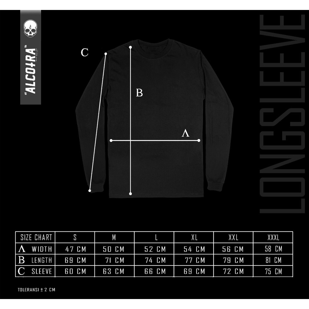 LONGSLEEVE ALCOTRA SIZE LOKAL MATERIAL: COTTON COMBED 32’S PRINT : WATERBASED RUBBER ( BEST FOR DETAIL SLIK PRINTING )