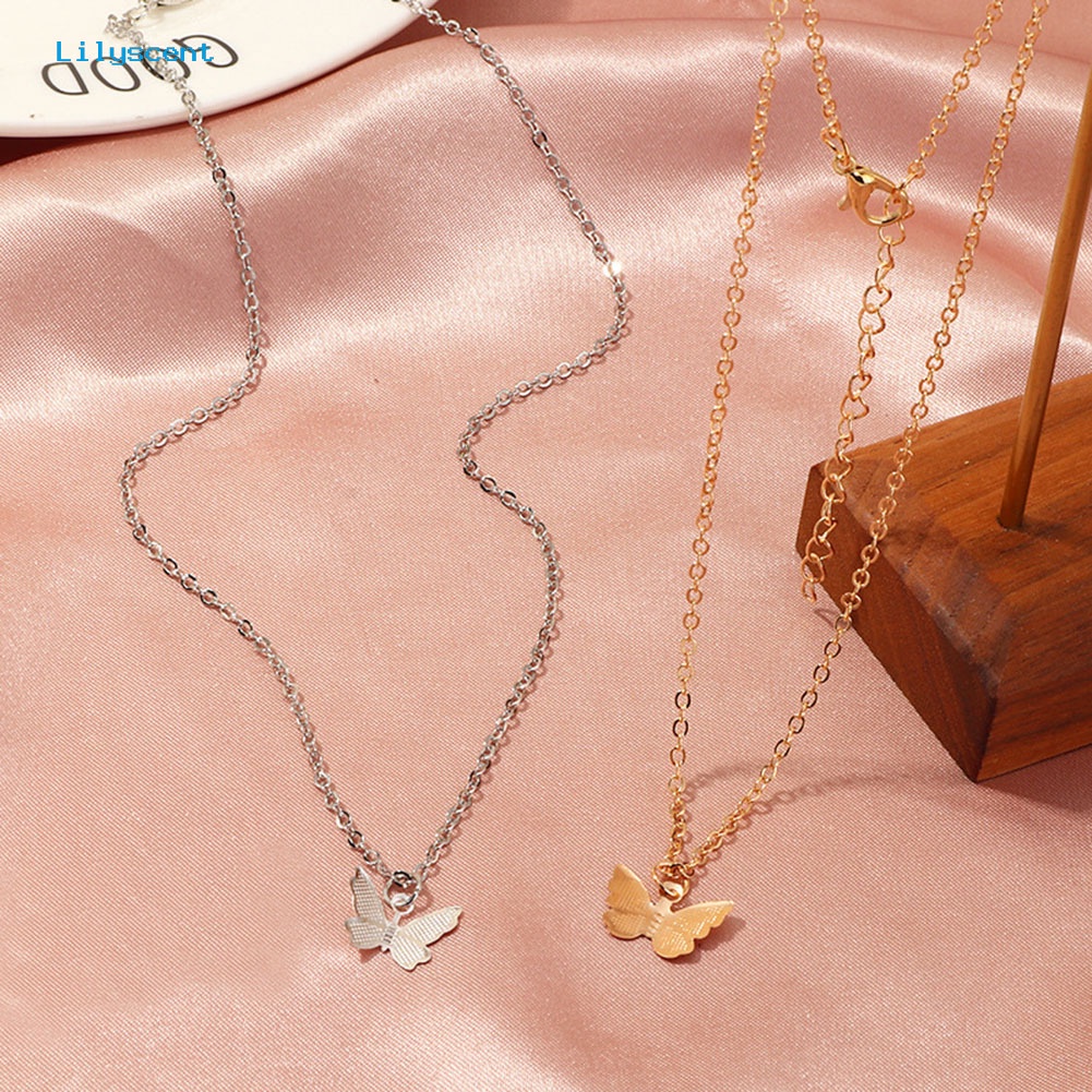 Detail [LS] Fashion Lady Single Layer Butterfly Pendant Kalung Rantai Klavikula Perhiasan Hadiah
