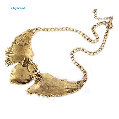 Detail [LS] Fashion Wanita Berlian Imitasi Jantung Sayap Malaikat Pernyataan Kalung Perhiasan