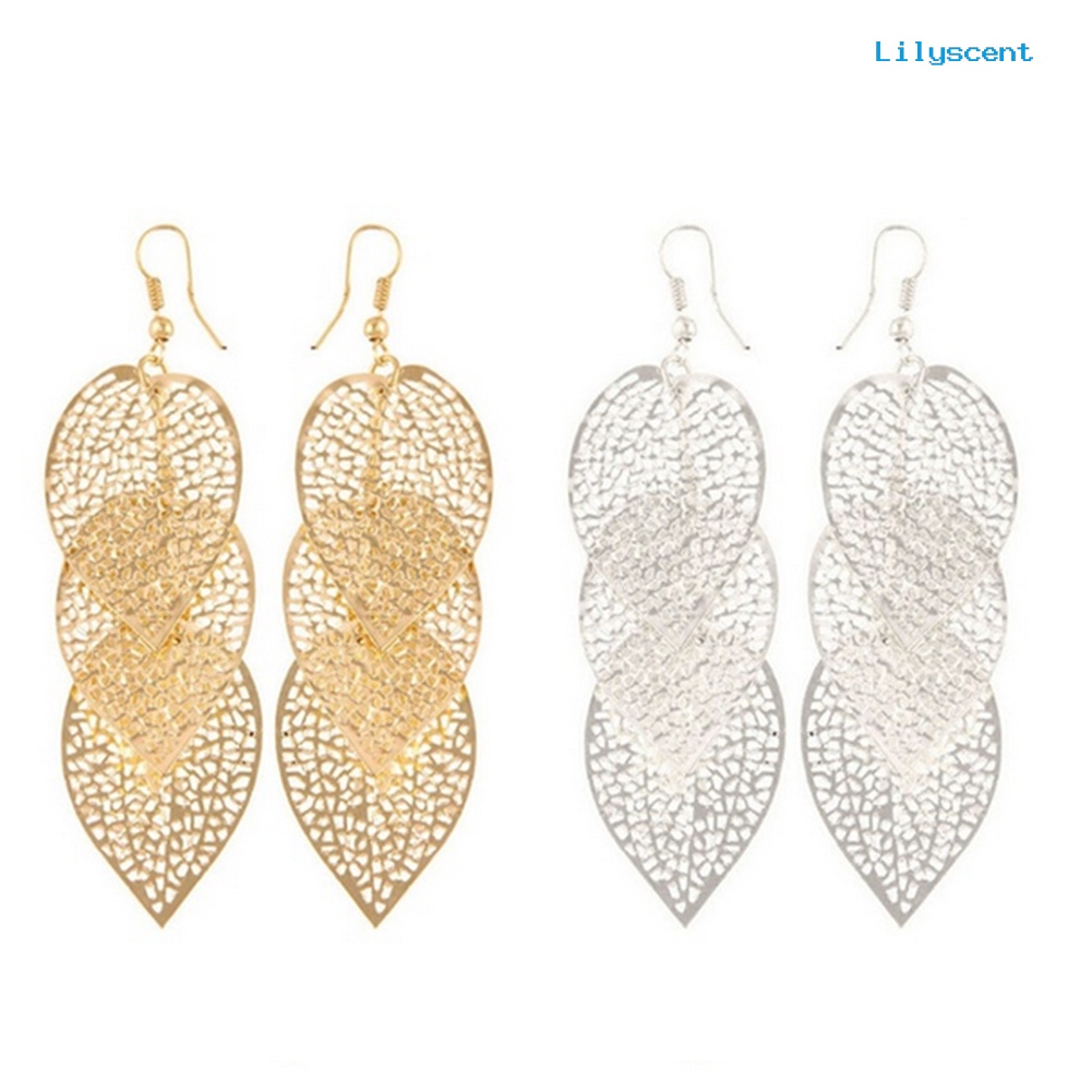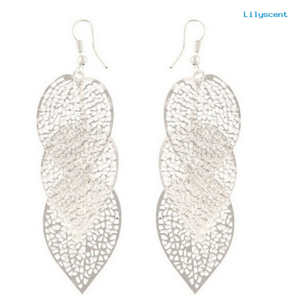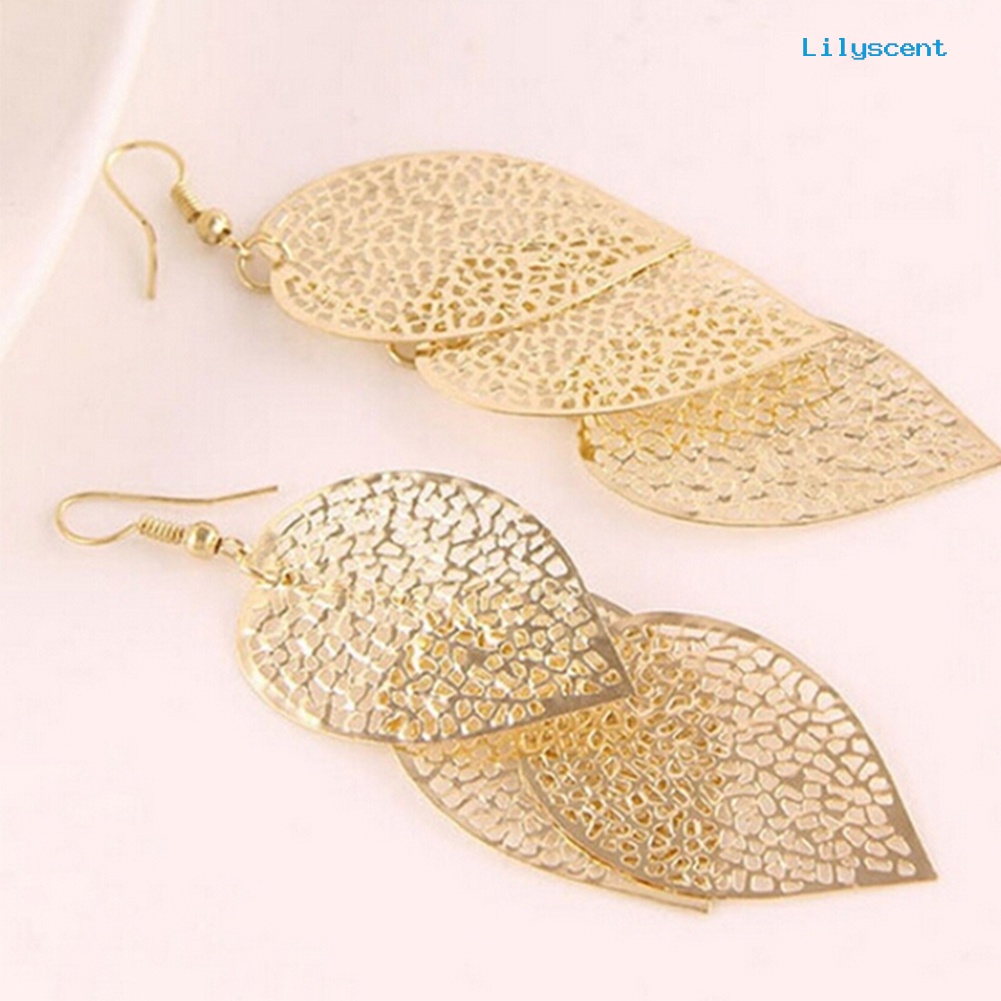 Detail [LS] Fashion Wanita Berongga Daun Berbentuk Drop Menjuntai Kait Anting Hadiah Perhiasan Pesta