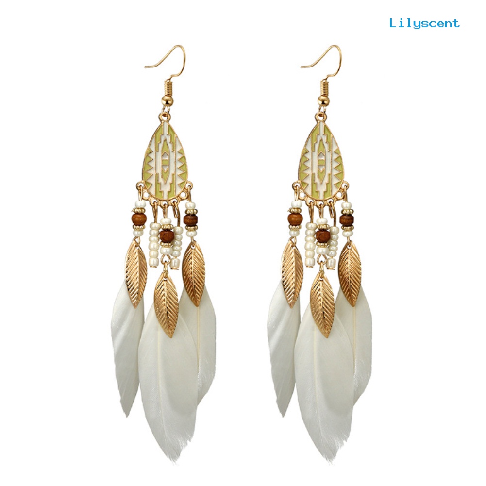 Detail [LS] Gaya Etnik Kait Wanita Anting Panjang Bulu Pesona Perhiasan Ornamen Hadiah
