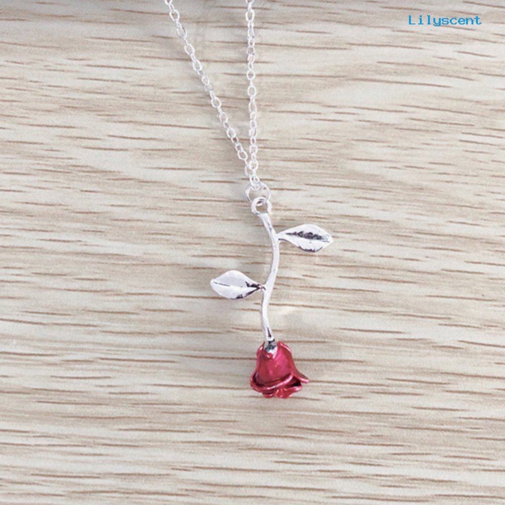 Detail Ls Perhiasan Kalung Rantai Liontin Mawar Enamel Wanita Elegan Hadiah Valentines Day