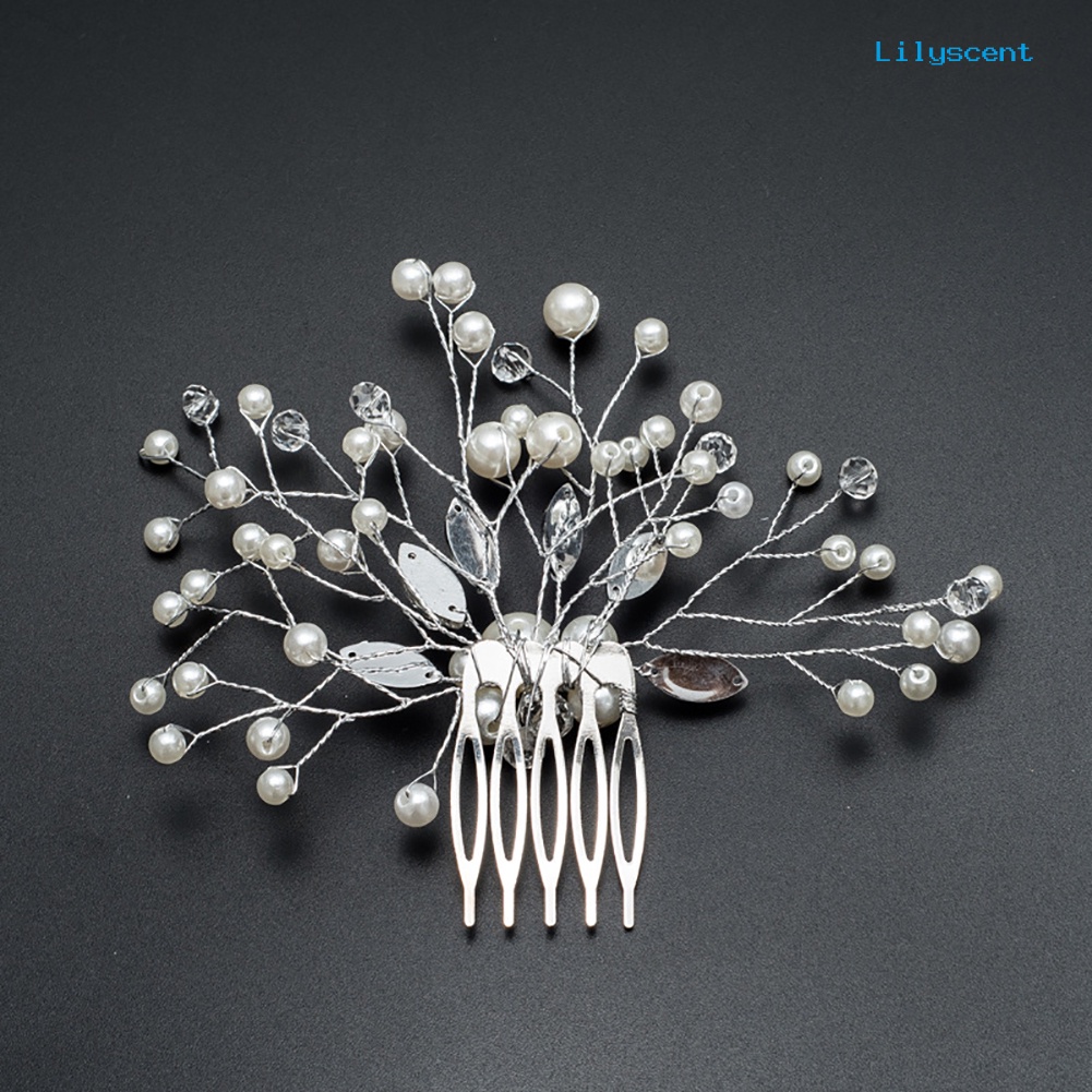 Detail [LS] Shinyy Mutiara Imitasi Mengkilap Berlian Imitasi Wanita Jepit Rambut Sisir Pengantin Perjamuan Pernikahan Hiasan Kepala