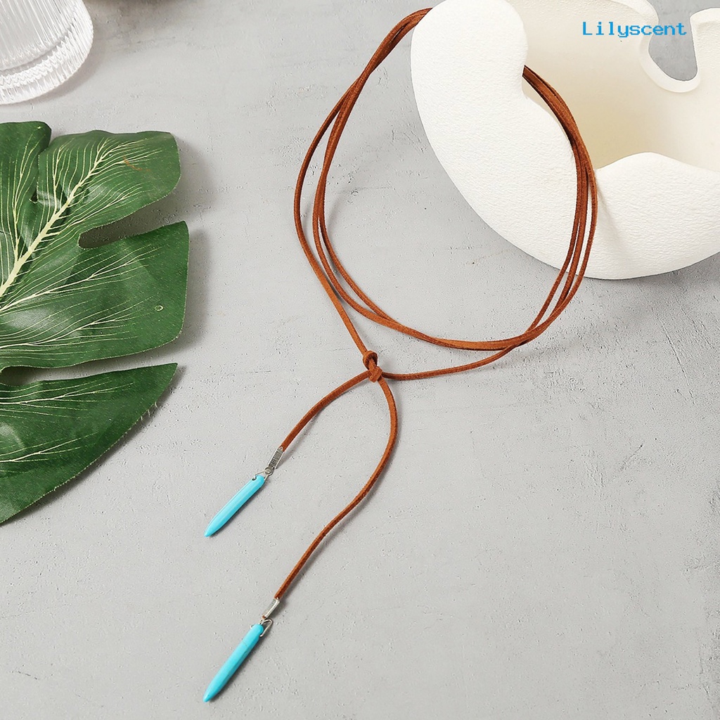 Detail [LS]Turquoise Adjustable Tali Suede Wanita Kalung Gaya Bohemian Liontin Kalung Kait Anting Perhiasan Aksesoris