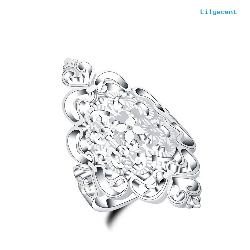 Detail [LS] Vintage Berongga Bunga Jari Cincin Wanita Pernikahan Cocktail Pesta Perhiasan Hadiah