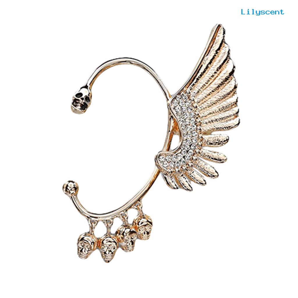 Detail [LS] Wanita Berlian Imitasi Sayap Bentuk Tengkorak Klip Telinga Manset Anting Tanpa Tindik Untuk Telinga Kiri