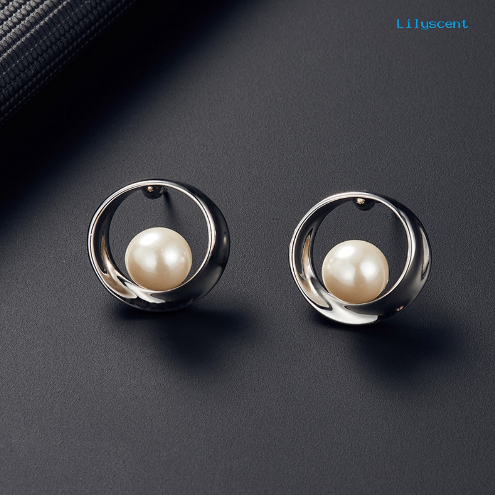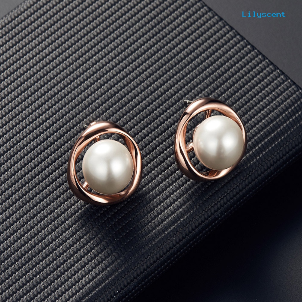 [LS]Wanita Mutiara Imitasi Bulat Liontin Kalung Stud Anting Set Perhiasan Pesta Pernikahan