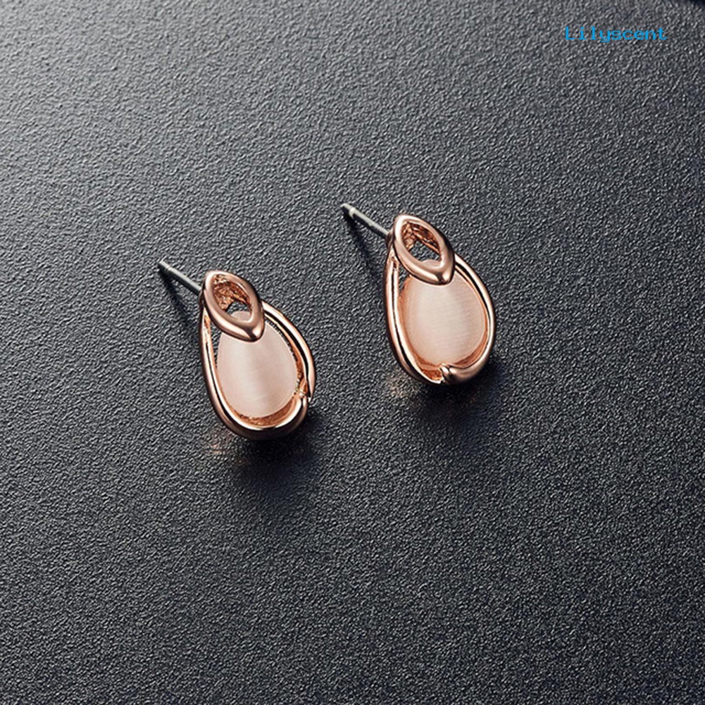 Detail [LS] Water Drop Shape Faux Opal Pendant Kalung Anting Set Perhiasan Pengantin Pernikahan