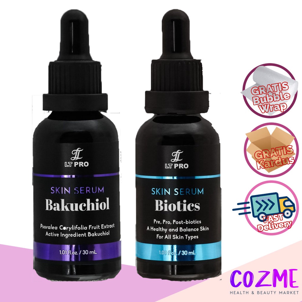 - LT PRO SKIN SERUM BAKUCHIOL Serum dengan bahan aktif Bakuchiol yang berasal dari ekstrak biji dan buah dari psoralea corylifolia sebagai alternatif Retinol. dapat digunakan untuk semua jenis kulit untuk membantu menjaga kelembaban kulit, memperlambat munculnya tanda-tanda penuaan dini,merawat kulit cendrung berjerawat dan kusam, dapat digunakan pagi dan malam setelah wajah di bersihkan.