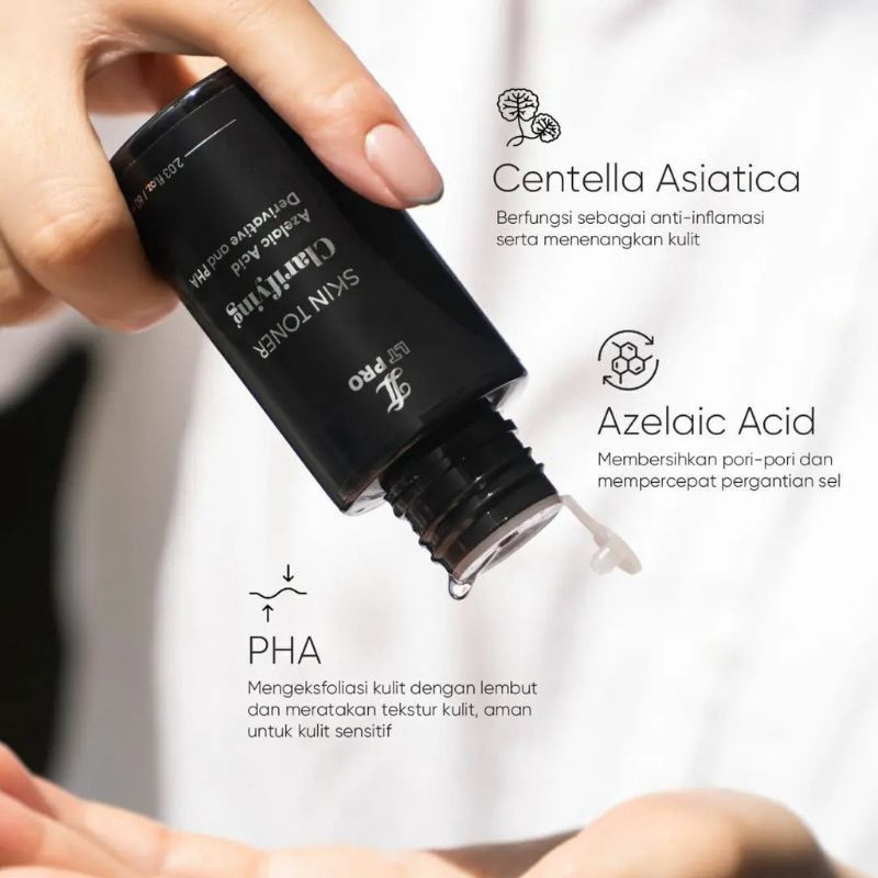 LT Pro Skin Toner Clarifying mengandung Azelaic Acid derivate dan PHA yang berfungsi menjaga kelembapan kulit,mengontrol sebum serta mencerahkan kulit.