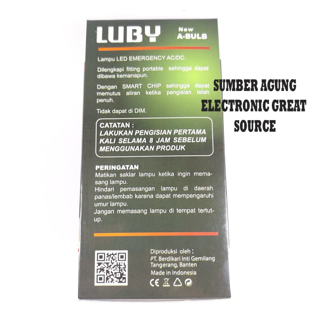 SPESIFIKASI PRODUK : Luby Aladdin 12W Emergency Bulb Cahaya Putih AC DC Magic Lamp 12 Watt jenis produk : NEW ALADDIN watt : 12 watt baterai : 2600 mAh Lithium daya tahan : >3 jam voltase : 100-240V ~ 50/60Hz fungsi : AC/DC CRI : >80 color temp : 6500K fluks chaya AC : 1140Lm fluks chaya DC : 700Lm LAKUKAN PENGISIAN PERTAMA KALI SELAMA 8 JAM SEBELUM MENGGUNAKAN PRODUK UKURAN : 8x8x16cm BERAT : 400gr