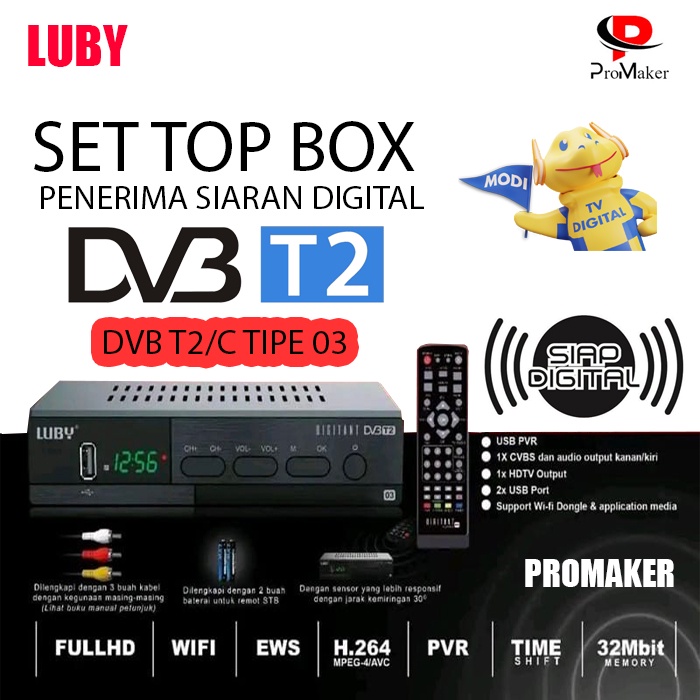 Luby DVB-T2-03 Set Top Box Receiver Tv Digital STB Full HD SNI Garansi Resmi 1 Tahun