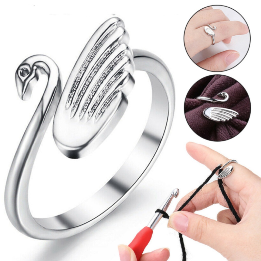 Detail Lucky DIY Swan Tembaga Rajut Open Loop Perhiasan Jahit Kait Crochet Loop Benang Panduan Jari Memakai Bidal Adjustable Crochet Wire Winder