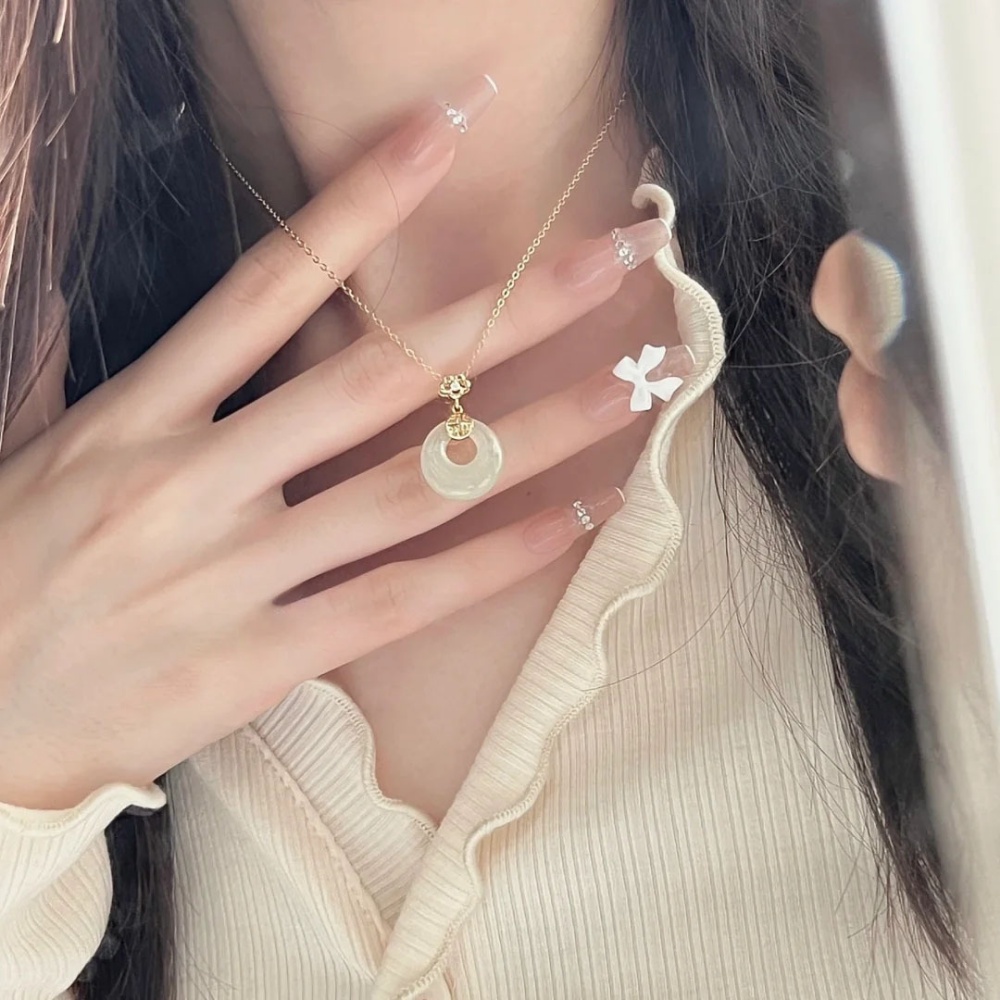 Lucky Safety Clasp Kalung Untuk Wanita Dengan Desain Niche Mewah Tingkat Tinggi Meniru Liontin Giok Hotan Temperamen Sederhana Rantai Klavikula Perhiasan Gadis Seksi