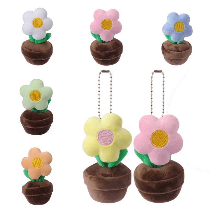 3.9in Kecil Daisy Potted Tas Boneka Mewah Liontin Boneka Lembut Boneka Gantungan Kunci Hadiah Anak-anak