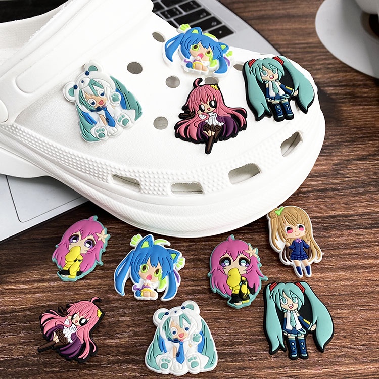 Lucu Hatsune Miku Jibz Kartun Croc charms Pin Aksesoris Sepatu Menghias Sandal Sendal Gesper Anak Hadiah Yang Baik