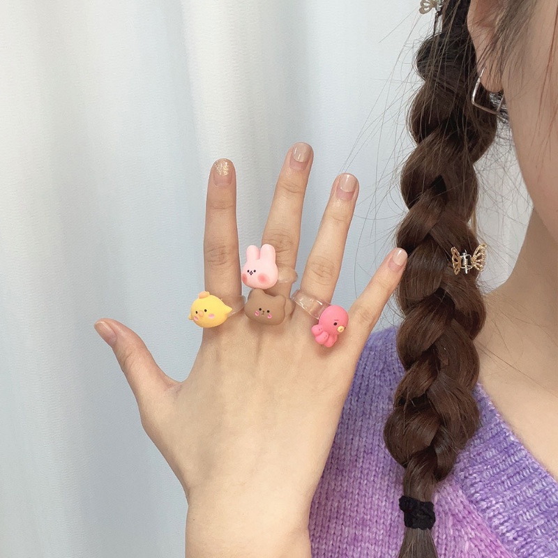 Detail Lucu Kartun Hewan Cincin Kelinci Gajah Anak-Anak Cincin Warna-Warni Akrilik Pesta Cincin Gadis Unik Hias Cincin