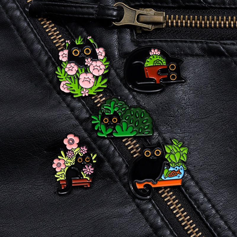 Detail Lucu Kucing Tanaman Enamel Pin Bros Daun Hijau Bunga Kucing Bros Lencana Logam Kerah Pin Ransel Perhiasan Hadiah