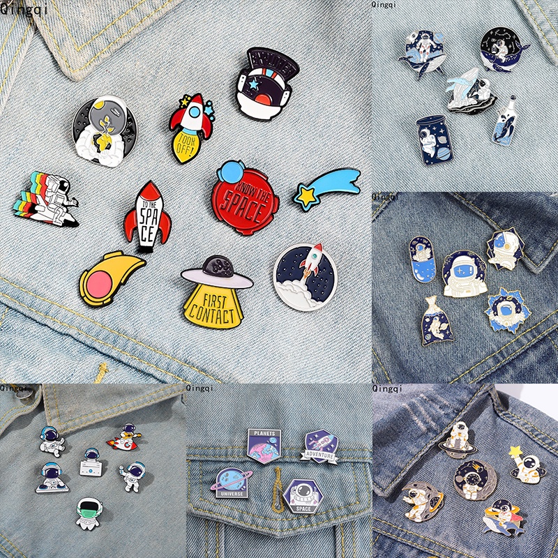 Aksesoris Fashion > Aksesoris Tambahan > Bros & Pin > Lucu Planet Astronot Enamel Pin Luar Angkasa Paus Bulan Bintang Roket Alloy Bros Lencana Kerah Pin Kartun Astronot Perhiasan Hadiah Untuk Anak-Anak Teman