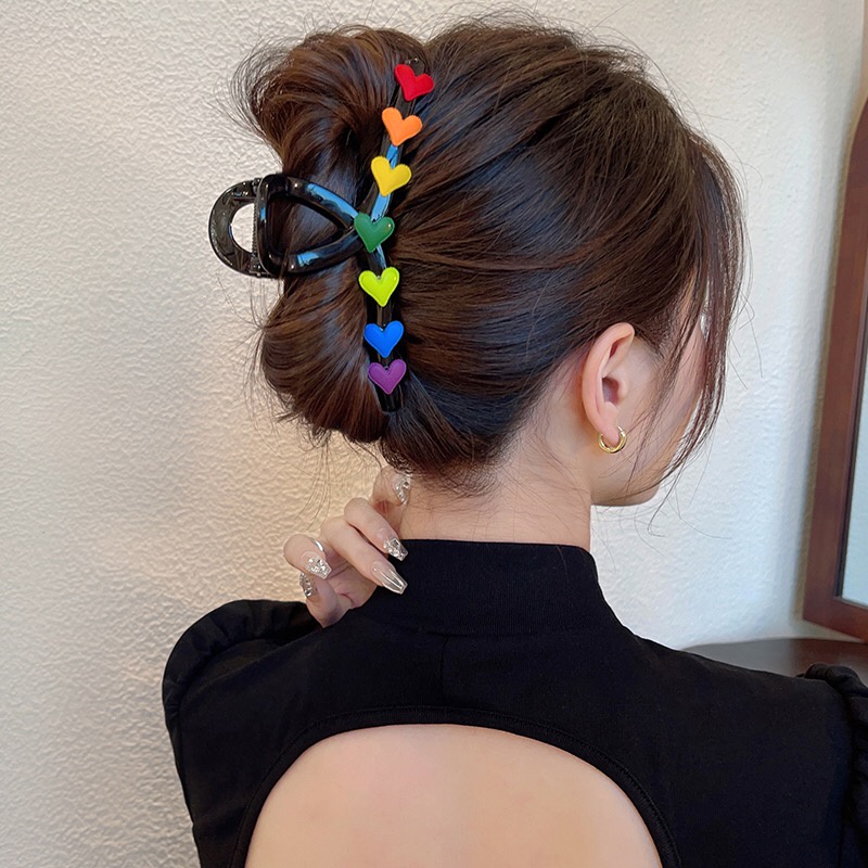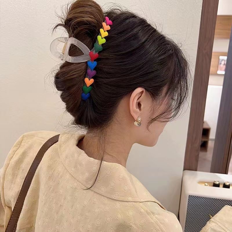 Detail Lucu Warna Pelangi Hati Hiu Besar Klip Rambut Klip Aksesoris Rambut Wanita