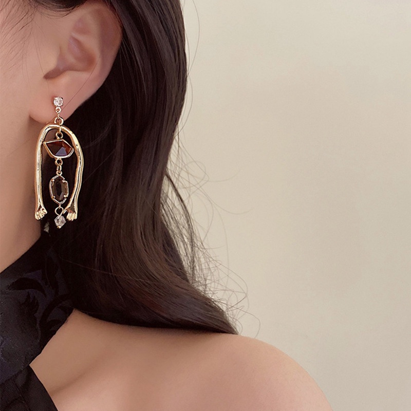 Detail Lukisan Minyak Prancis Gaya Retro Seni Abstrak Perempuan Fashion Asimetris Desain Versi Korea Kepribadian Anting Pasang