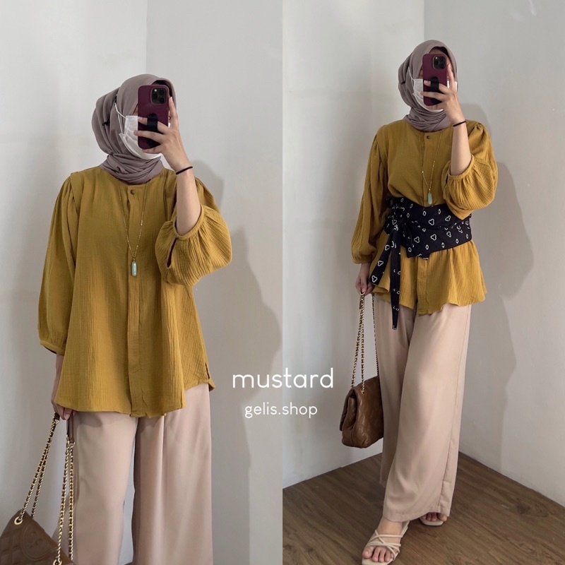 * kancing depan full (busui friendly) * Tangan kancing * Model tangan balon mengikuti desain baju jadi memang besar ya dear,, 😘 * Tidak menerawang * Cocok untuk ngantor maupun daily wear