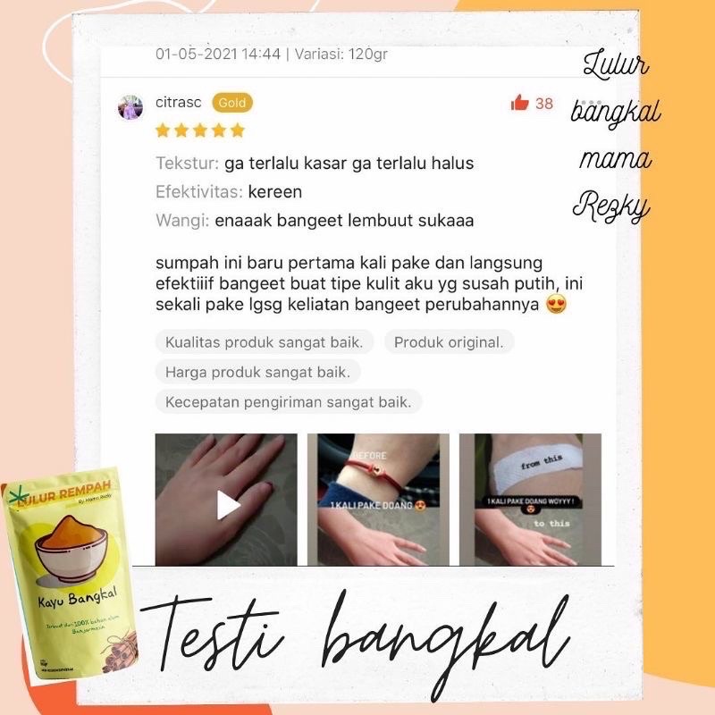 LULUR BANGKAL ASLI 100% BY. ⚠️Hati-hati dengan harga murah yang isinya cuma pake tepung beras dan kunyit Lulur bangkal mama rezky asli 100% pake kayu bangkal kalimantan hasil pabrikan sendiri ⚠️
