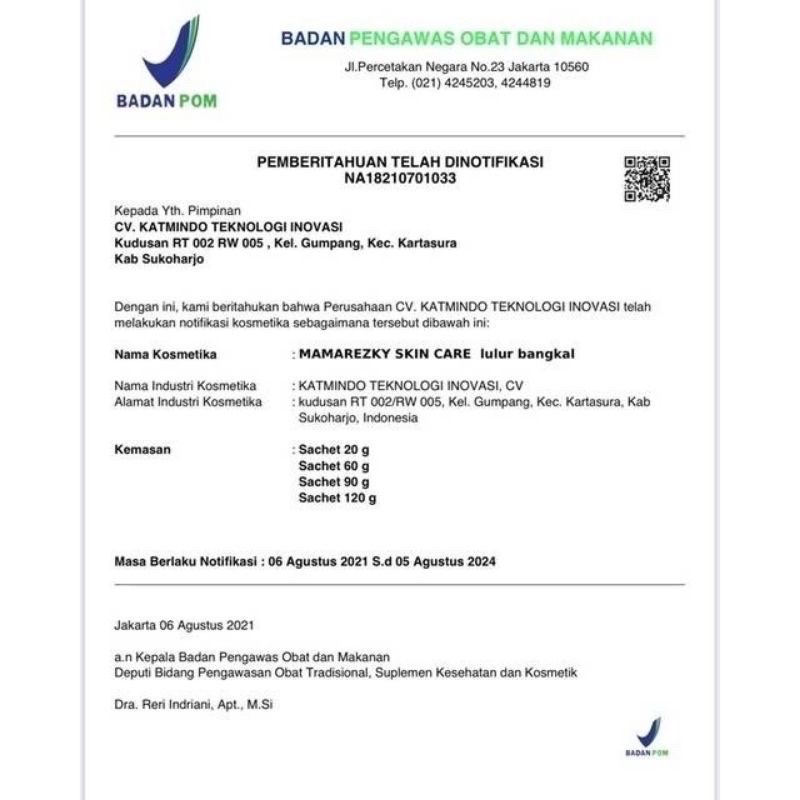SUDAH TERDAFTAR BPOM BISA DICEK YA KAK : NA18210701033