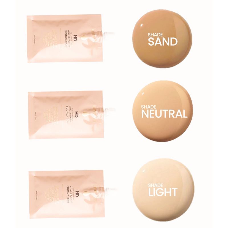 Tersedia dalam 3 shade pilihan: Light - Untuk kulit terang Neutral - Untuk kulit terang-kuning langsat Sand - Untuk kulit sawo matang (TULISAN WARNA DIBALIK KEMASAN)