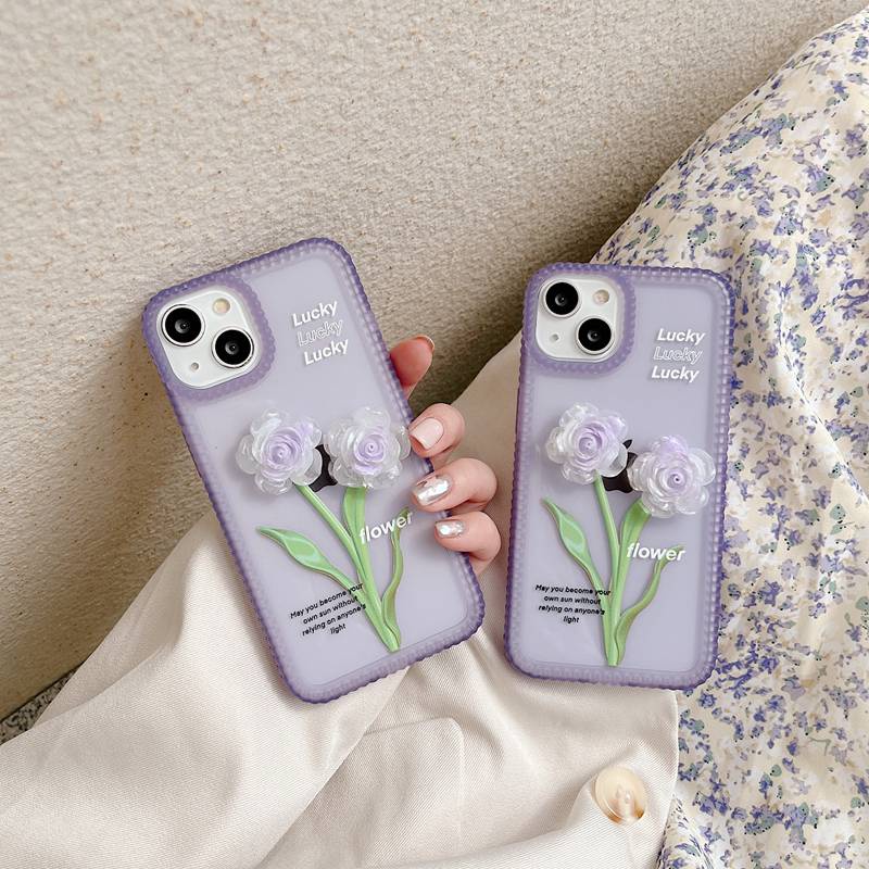 Handphone & Aksesoris > Casing & Skin > Casing & Skin Handphone > Luminous!3D Purple Rose Biscuit Edge Soft Case Casing Apple HP iP iPhone 12 13 14 Pro Max 11