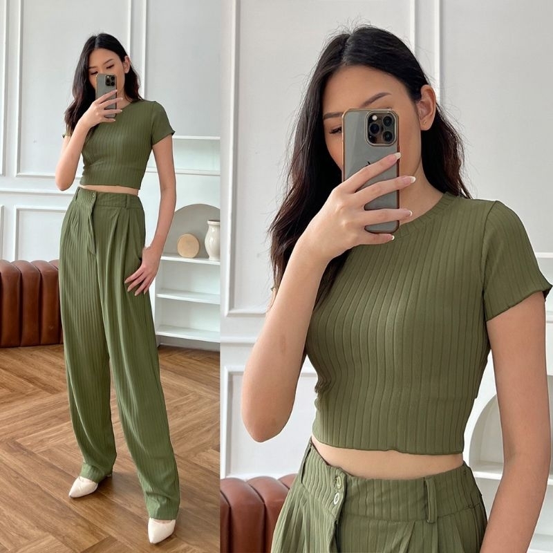 Detail Luna One Set Premium Rib Knit Crop Top Setelan Wanita Berkwalitas Celana kulot knit - kaos knit Baju Wanita