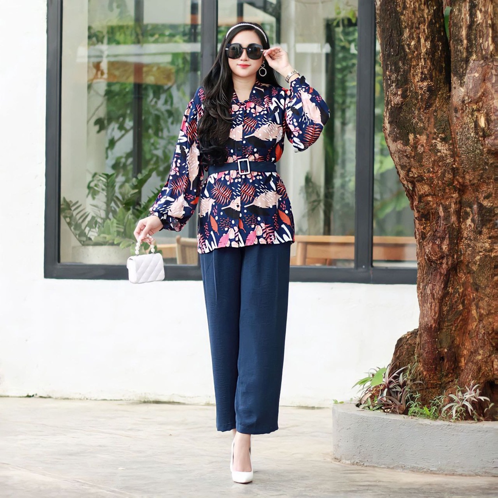 Detail Luna Set - One Set Wanita Kemeja Rayon Luna Premium Setelan Baju Lengan 7/8 Set Celana Panjang Kekinian LD 100 cm