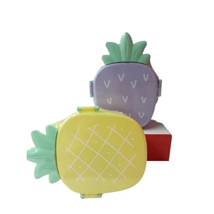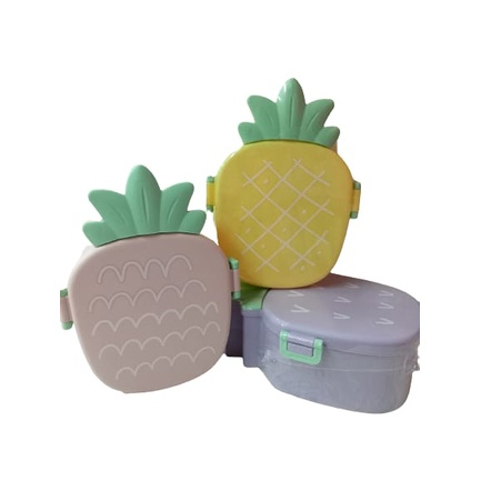 Detail Lunc Box Kotak Bekal Tempat Makan Model Nanas Free Sendok Garpu Kode 6713