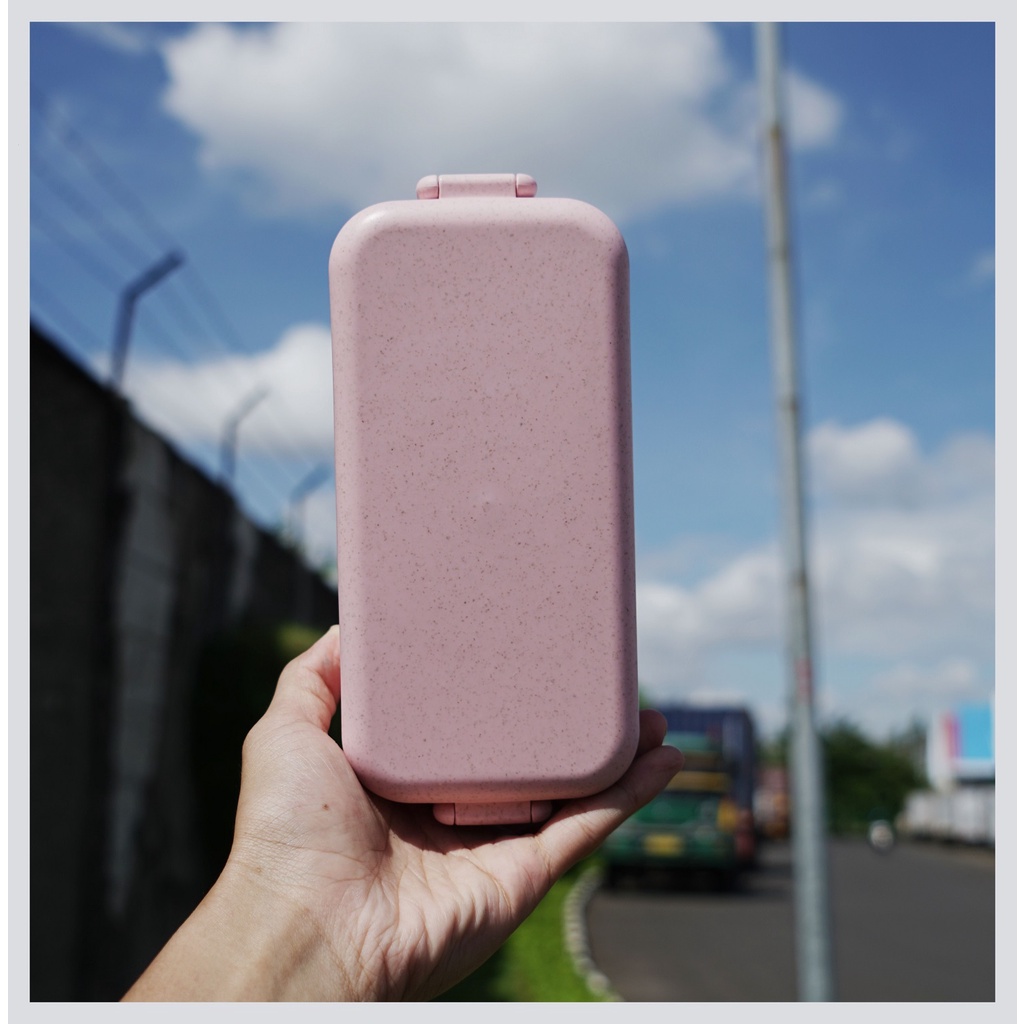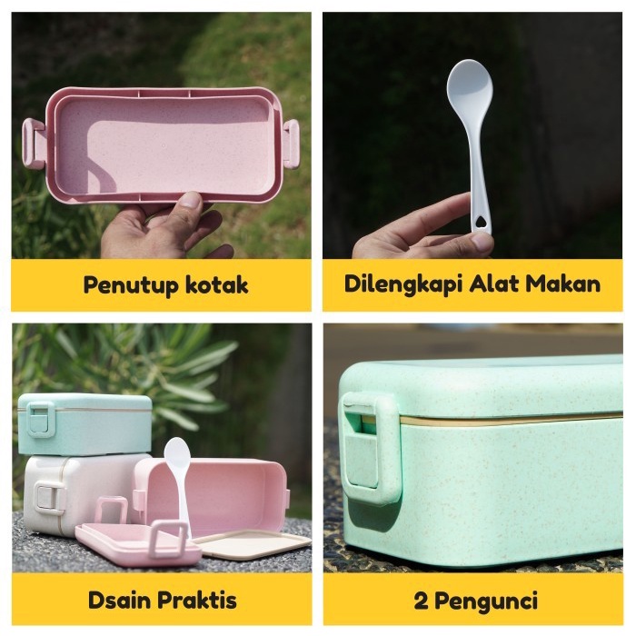 Detail Lunch Box 2 Susun Jerami Gandum Set Sendok dan Garpu