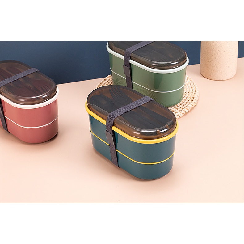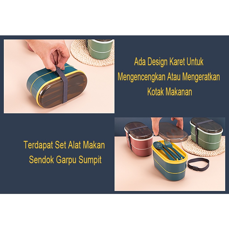 Detail Lunch Box 2 Tingkat 700Ml Free Alat Makan Set Bahan PP Misshop