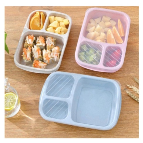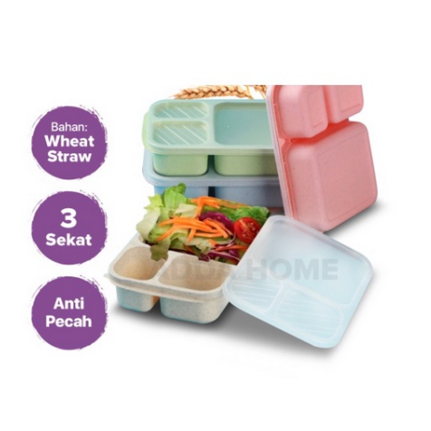 Perlengkapan Rumah > Peralatan Dapur > Tempat Penyimpanan Makanan > Lunch Box 3 Sekat Bahan Jerami Gandum Wheat Straw/Kotak makan/Box bekal makanan