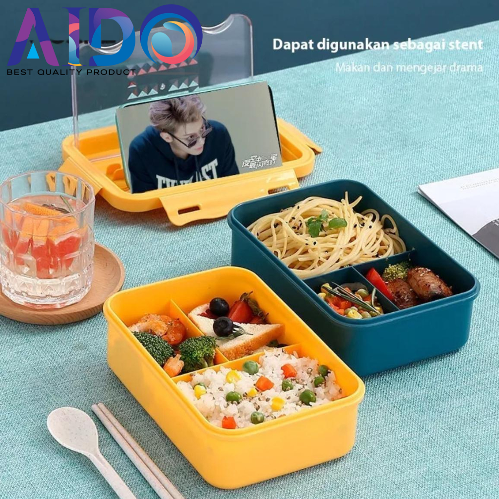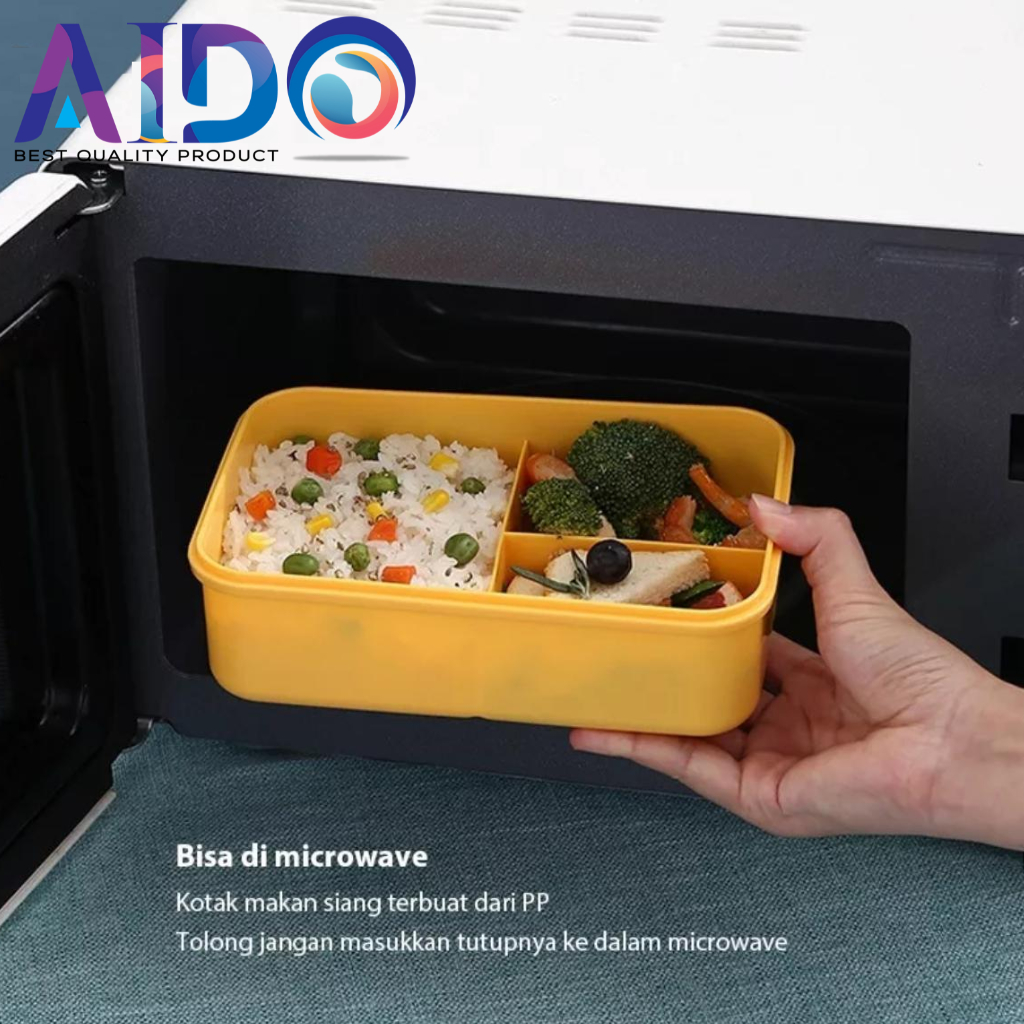 Kotak makan 3 sekat Free sendok garpu random Suhu yang berlaku: 0-100 ℃, tutupnya harus dikeluarkan saat oven microwave dipanaskan Daftar kemasan: kotak makan siang * 1 pcs; sendok * 1 pcs