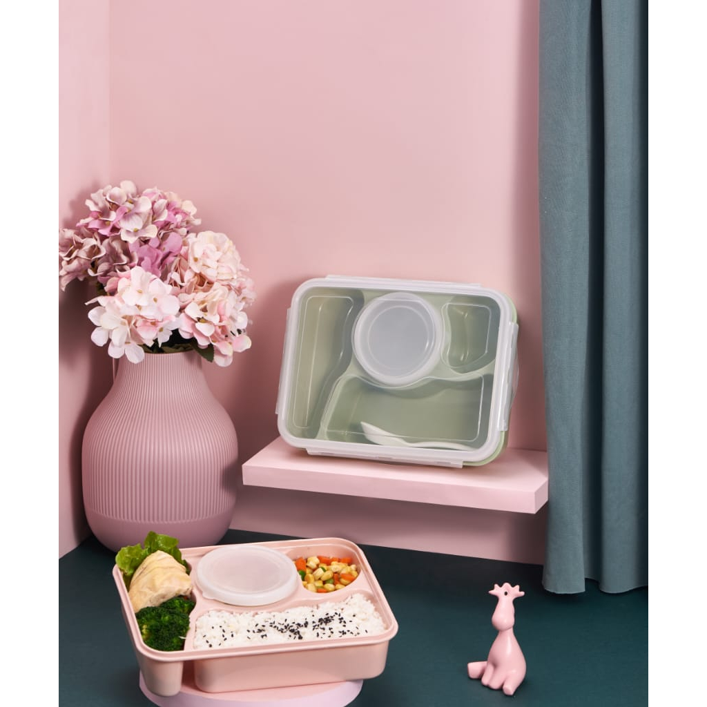 1. Terbuat dari bahan yang berkualitas untuk makanan: aman dan tidak membahayakan, tidak berbau plastik bahkan ketika menggunakan air mendidih di dalamnya. 2. Dilengkapi wadah sayur (Untuk menyimpan makanan berkuah) & sendok 3. Bahan berkualitas yang tahan terhadap panas atau dingin, dapat digunakan untuk pemasanan menggunakan microwave, menyimpan pada kulkas dan mesin cuci piring (Dishwasher) 4. Terdapat lubang ventilasi yang dapat dibuka atau ditutup sesuai kebutuhan (Lubang ventilasi untuk penguapan digunakan untuk menjaga kadar kelembapan makanan yang panas agar tidak berembun atau basah)