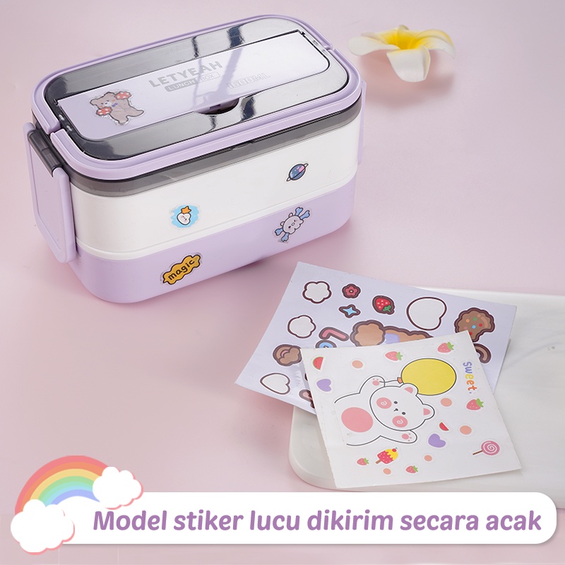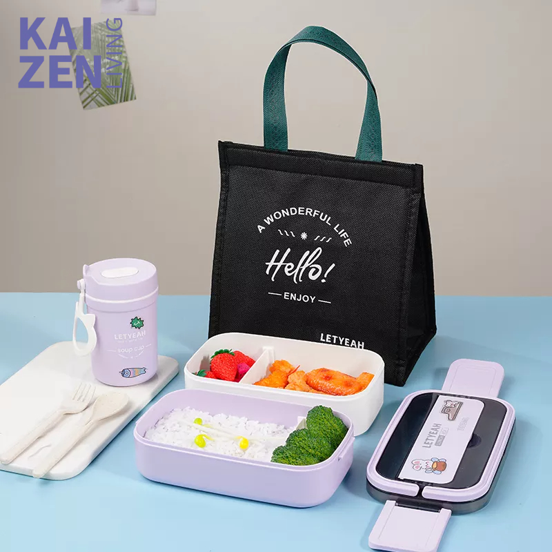 Perlengkapan Rumah > Peralatan Dapur > Tempat Penyimpanan Makanan > Letyeah & Kaizenliving Lunch box Set Tas Kotak Bekal Makan 1600 ml Lunch Box Free Sendok BPA Free Kotak Makan