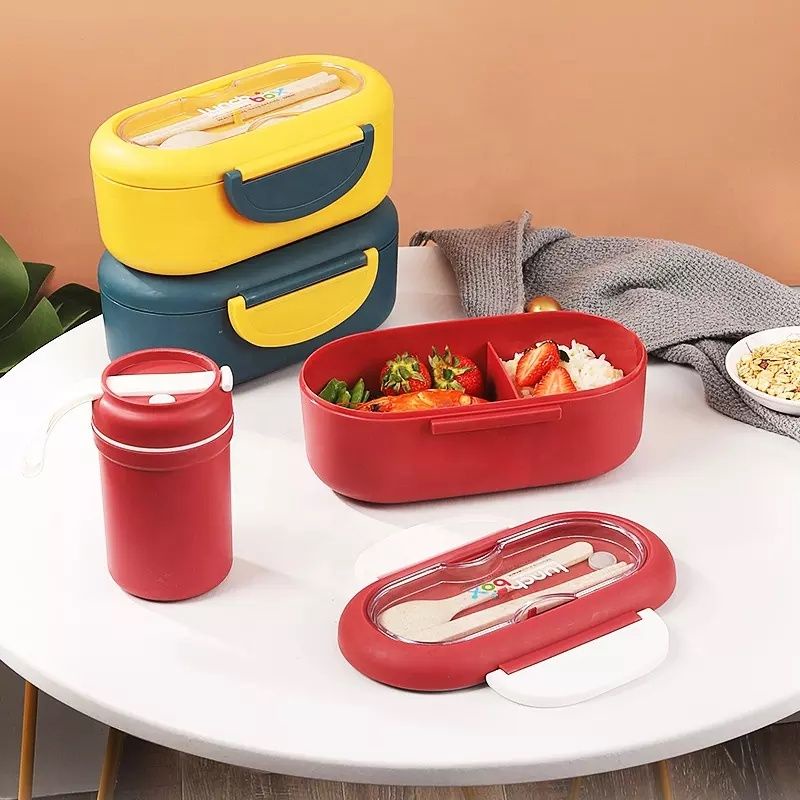 Detail LUNCHBOX KOTAK MAKAN SET DENGAN SOUP CUP OVAL ANTI TUMPAH 1000ML DAN 330ML