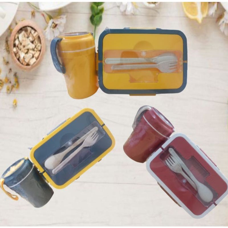 LUNCHBOX SET JERAMI GANDUM KOTAK BEKAL MAKAN 1000ML & MANGKUK SOUP 330ML BENTUK KOTAK